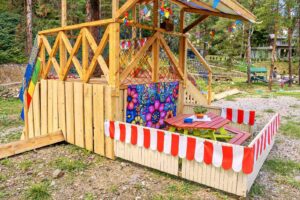 Posebnu pogodnost ovog apartmana čini kamin, savršen za opuštanje i stvaranje toplog ambijenta. Apartman ima zaseban ulaz, prostranu dnevnu sobu i tri odvojene spavaće sobe, što omogućava dovoljno prostora i privatnosti za sve goste. Kupatilo je opremljeno tuš kabinom, dok kuhinja sadrži sve što vam je potrebno za pripremu obroka – ploču za kuvanje, frižider, rernu, posuđe i kuhinjski pribor. Gostima je na raspolaganju i pribor za roštilj za uživanje u obrocima na otvorenom.